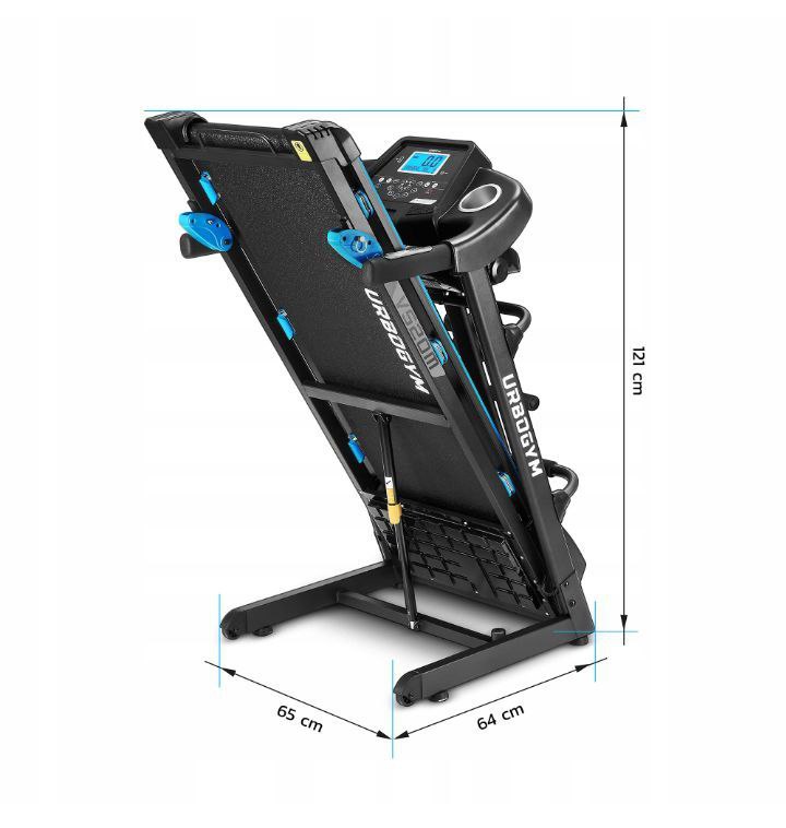 Co jest niezwykle istotne, prezentowana przez nas bieżnia posiada unikalny system podnoszenia na gazowym siłowniku, dzięki czemu po złożeniu zajmuje zaledwie jeden metr kwadratowy! Rozłożenie bieżni do użytku to tylko jedno kliknięcie. Całość trwa zaledwie kilka chwil. Dodatkowo zastosowane kółka transportowe, pozwalają na swobodne ustawienie bieżni w dowolnym miejscu Twojego domu, po zakończonym treningu. Dlatego posiadacze mniejszych przestrzeni, będą bardzo zadowoleni z możliwości złożenia urządzenia i ustawienia go w miejscu, gdzie bieżnia nie będzie dodatkowo zabierać przestrzeni.